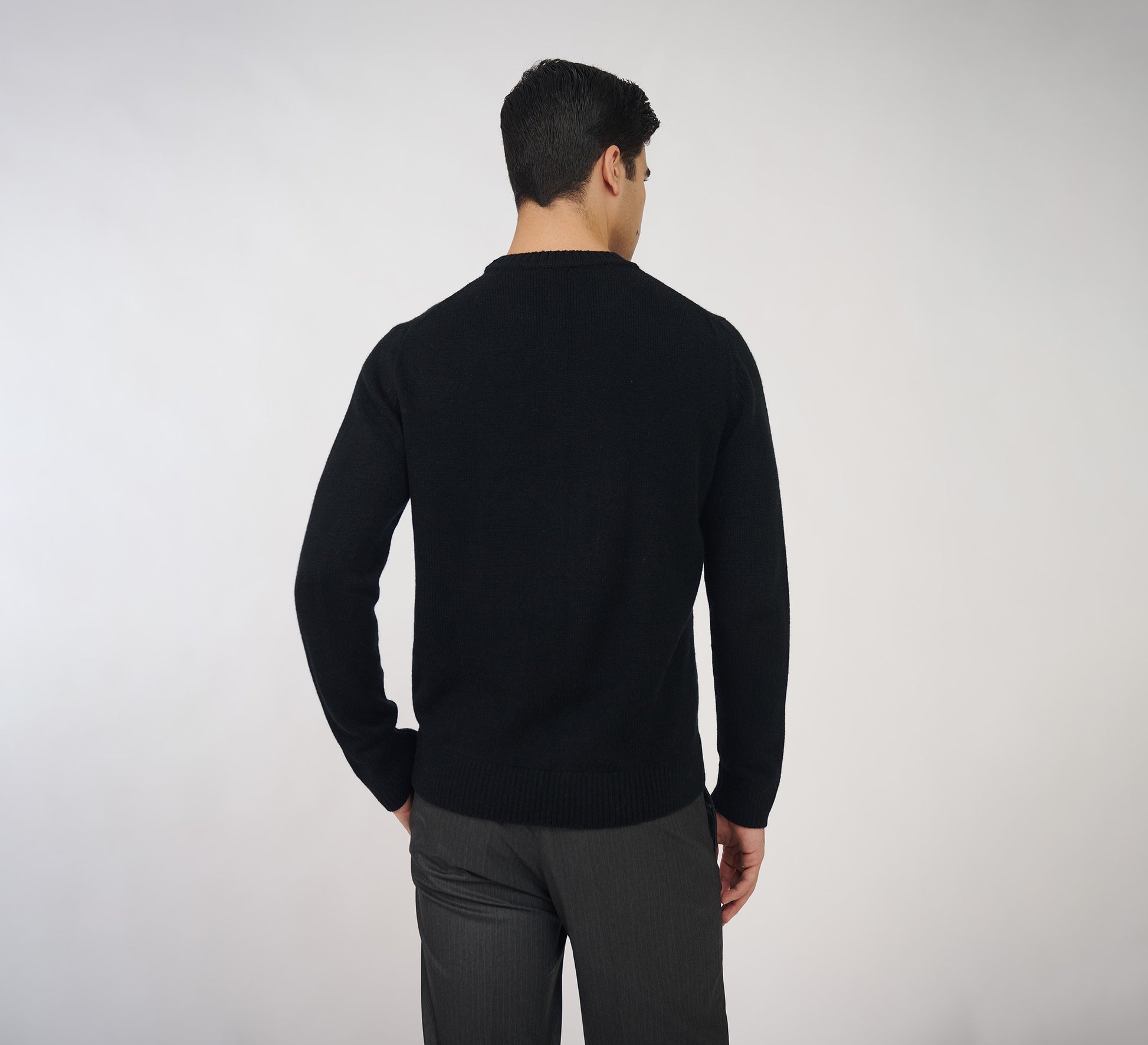 Classic black round-neck sweater crafted for effortless layering. Regular fit with soft touch. Perfect for a capsule wardrobe piece.