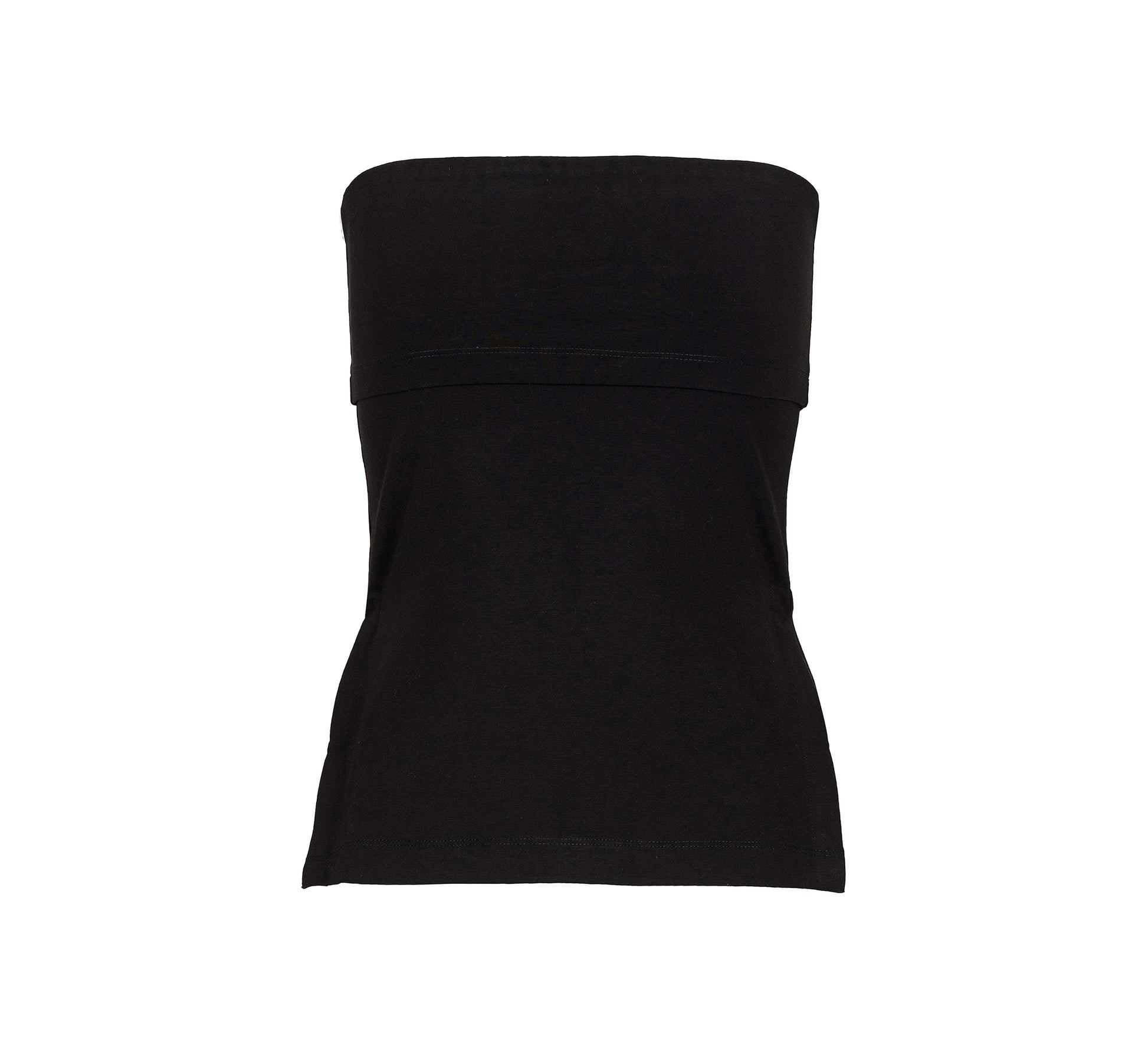 A black-coloured tube top crafted from a soft viscose-Tencel-elastane blend, offering a smooth touch, breathable comfort, and a flexible fit that moves with you. Designed to flatter the silhouette with a sleek, modern look, perfect for both casual and elevated styling.